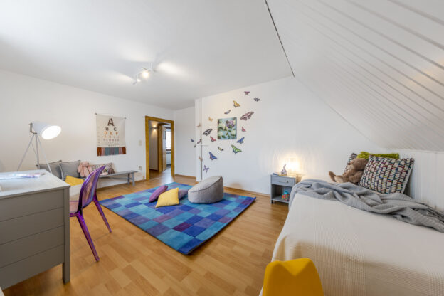 Wie viel leichter fällt das Verlieben, und damit die Kaufentscheidung, wenn alles, was sich der Interessent vorstellen soll, auf den ersten Blick erkennbar schon da ist! Durch das Staging ist aus dem eher dunklen, vollen Raum tatsächlich ein schönes, helles Kinderzimmer geworden – mit viel Platz zum Lernen, Spielen & Träumen. So erzeugt man bei Interessenten Schmetterlinge im Bauch!